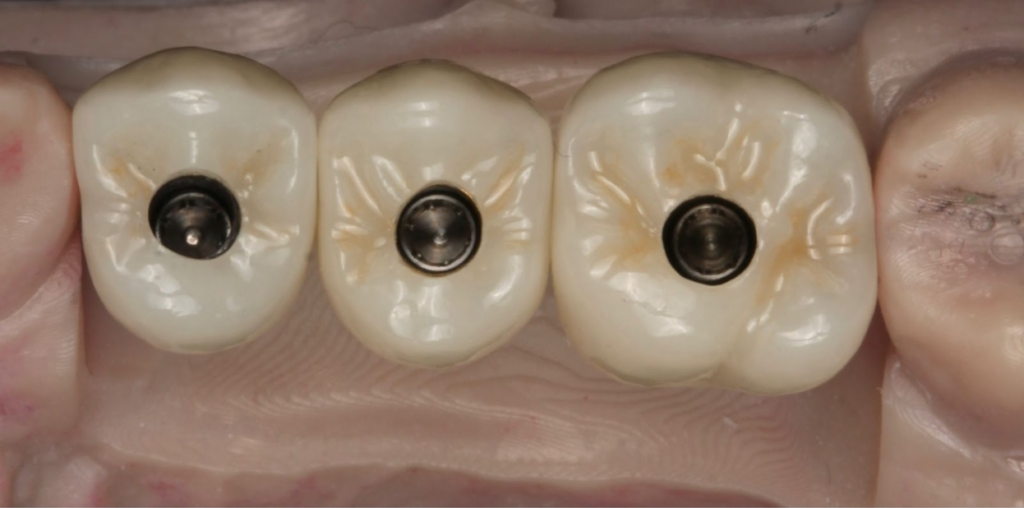 Passive fit. This is a big one. Achieving truly passive fit across a multi-unit splinted framework remains one of the most technically demanding aspects of implant prosthodontics. Even with modern digital workflows, misfit introduces residual stress at the bone-implant interface. Prete et al. (2024), publishing in Clinical Advances in Periodontics, showed that vertical platform discrepancies between splinted adjacent implants — even discrepancies as small as 0.5 mm — were associated with increased crestal bone loss, particularly on the middle implant. Individual crowns eliminate this variable entirely. Every unit seats to its own implant. No framework distortion. No residual stress.